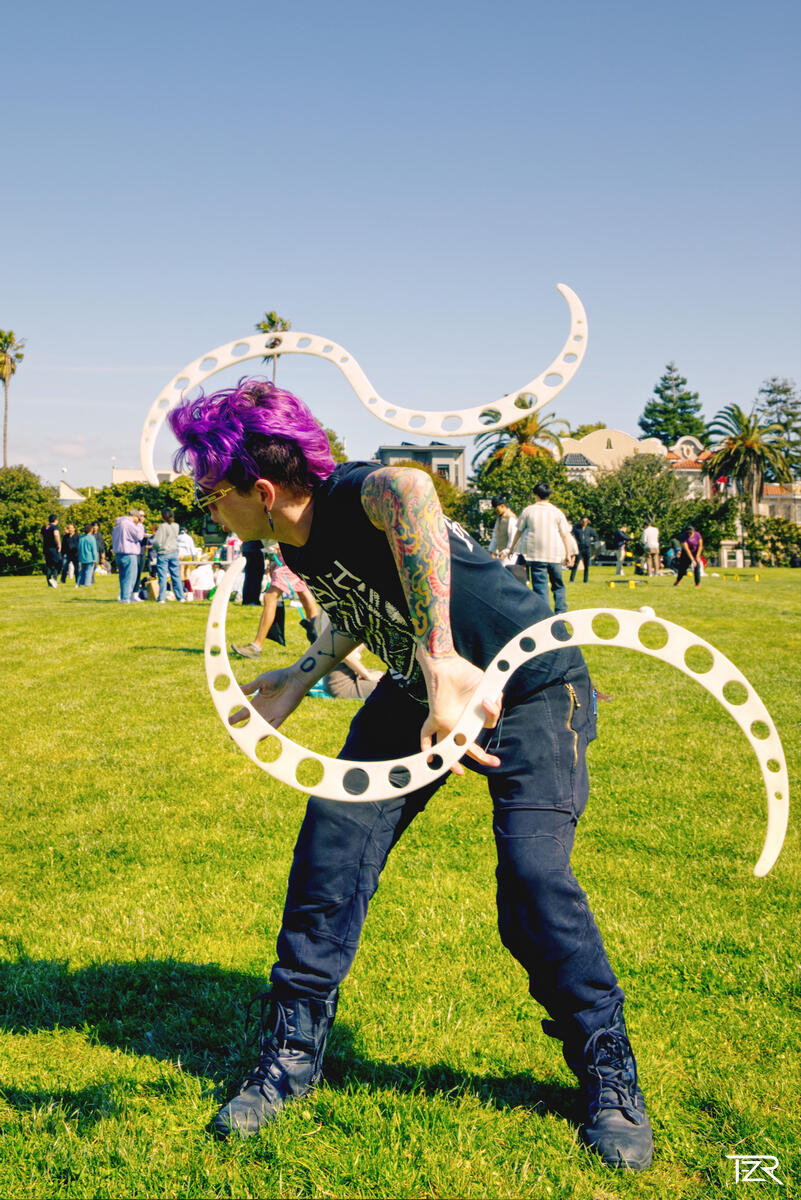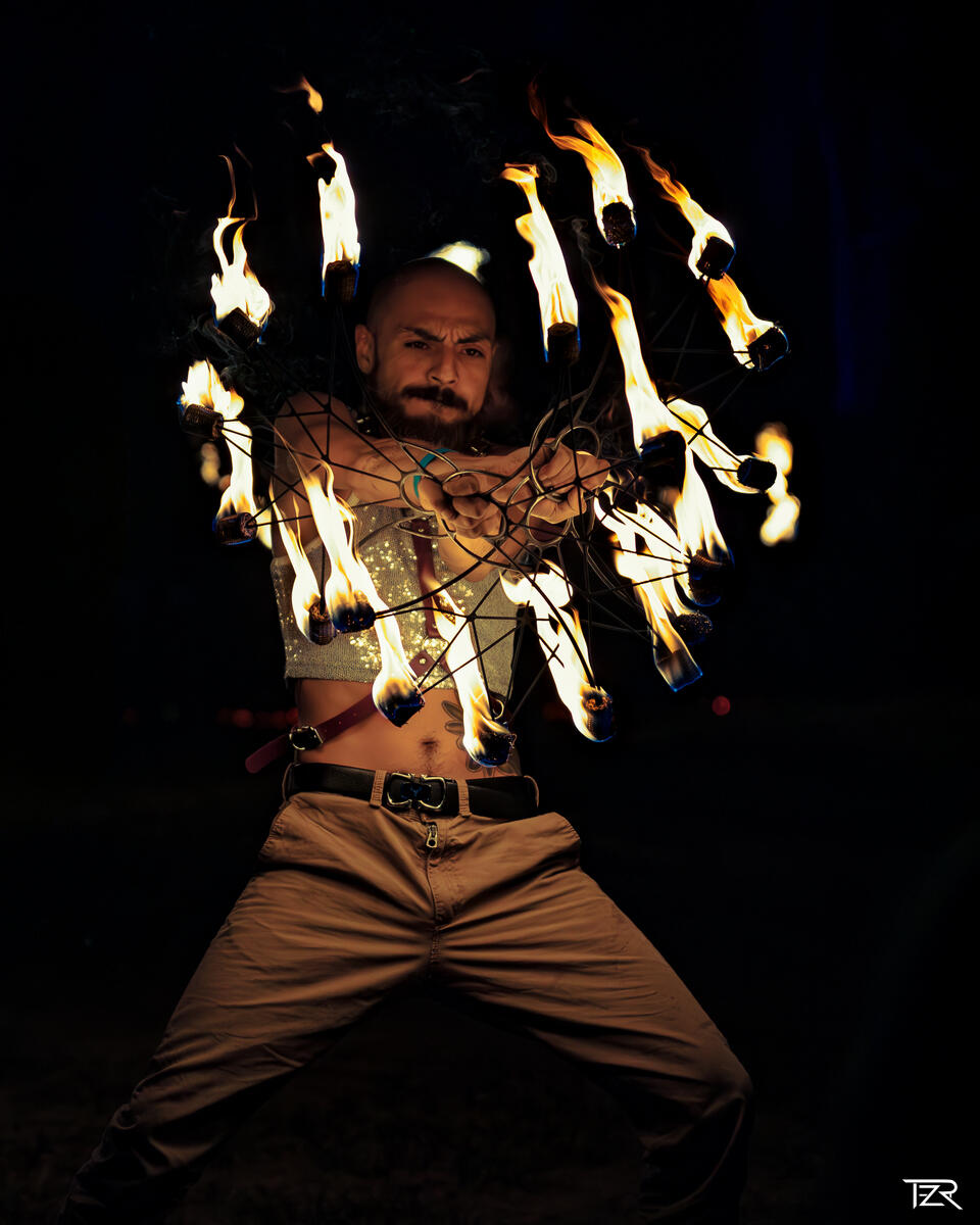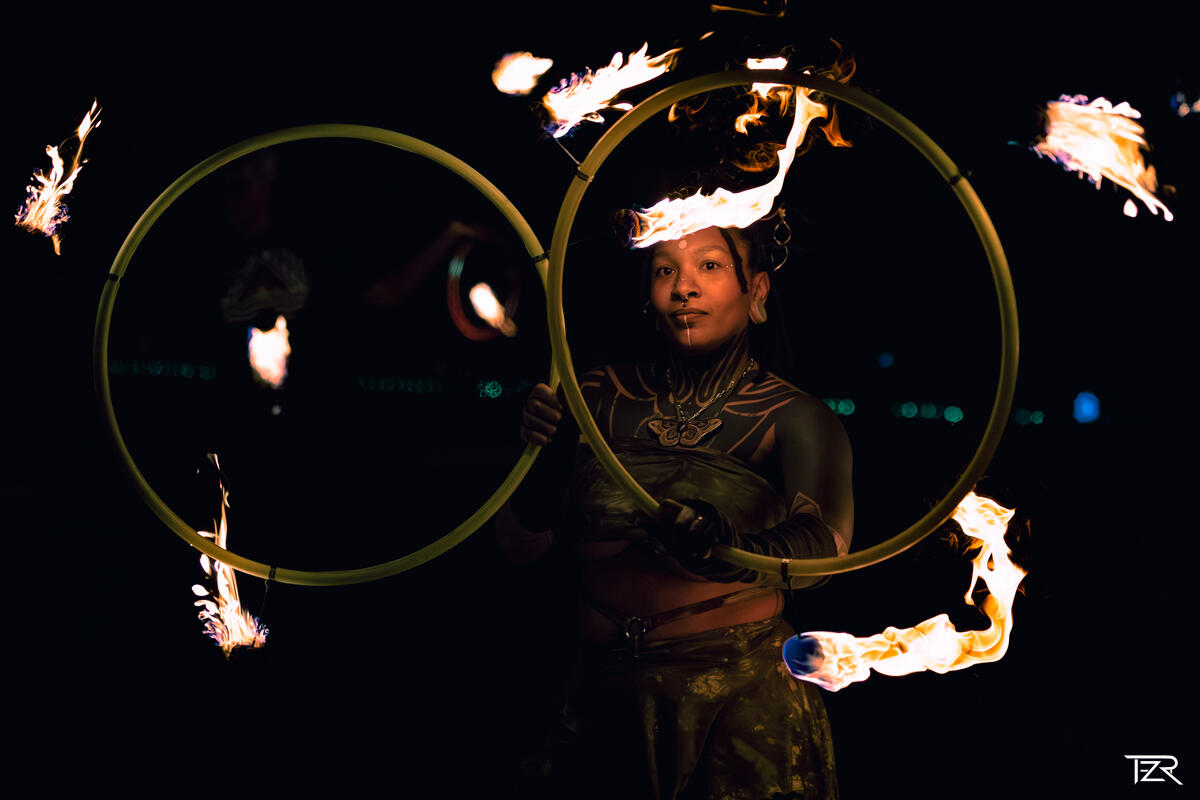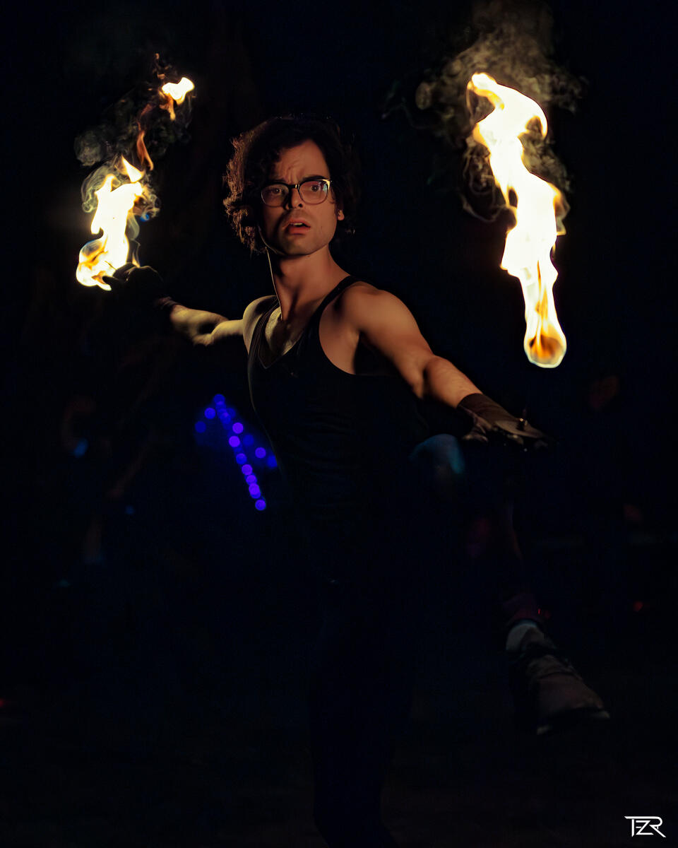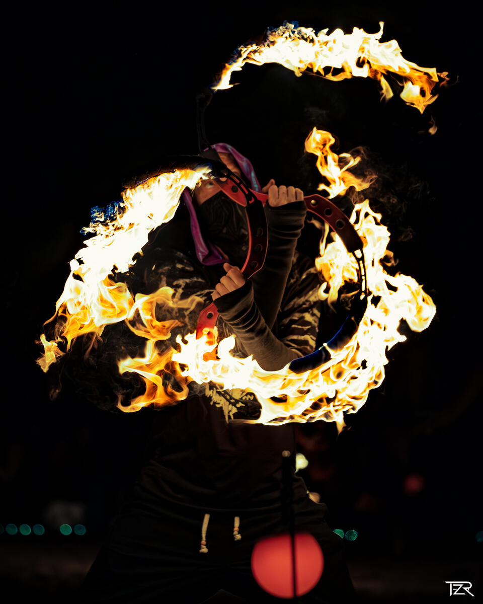 I am a trans-nonbinary architect, performance artist, and photographer based in Oakland, CA. While I have been taking photos my entire life with hand-me-down cameras, I have been truly practicing the craft since 2016 when I was given my older siblings' old Canon Rebel T2i. I learned how to use DSLRs that summer at my last year of the fine arts camp that I attended in middle and high school, and have been fully hooked since. I used that camera all the way until I bought my Canon EOS 5D Mk IV in Spring 2023.I have been practicing flow arts and fire photography almost as long as I have been in the community when I joined it in Fall 2017. These photos started as part of the flow arts club I was a part of throughout college, and continued as something that I only did with friends for a few years after. In the beginning of 2025, I decided to start taking photos of the local fire jam and have now become a staple photographer of the community.
